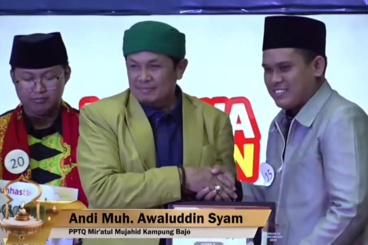 Pembina PPTQ Mir’atul Mujahid Kampung Bajo, Andi Muh Awaluddin Syam meraih Juara II dalam ajang nasional Unhas TV Mencari Da’i 2026