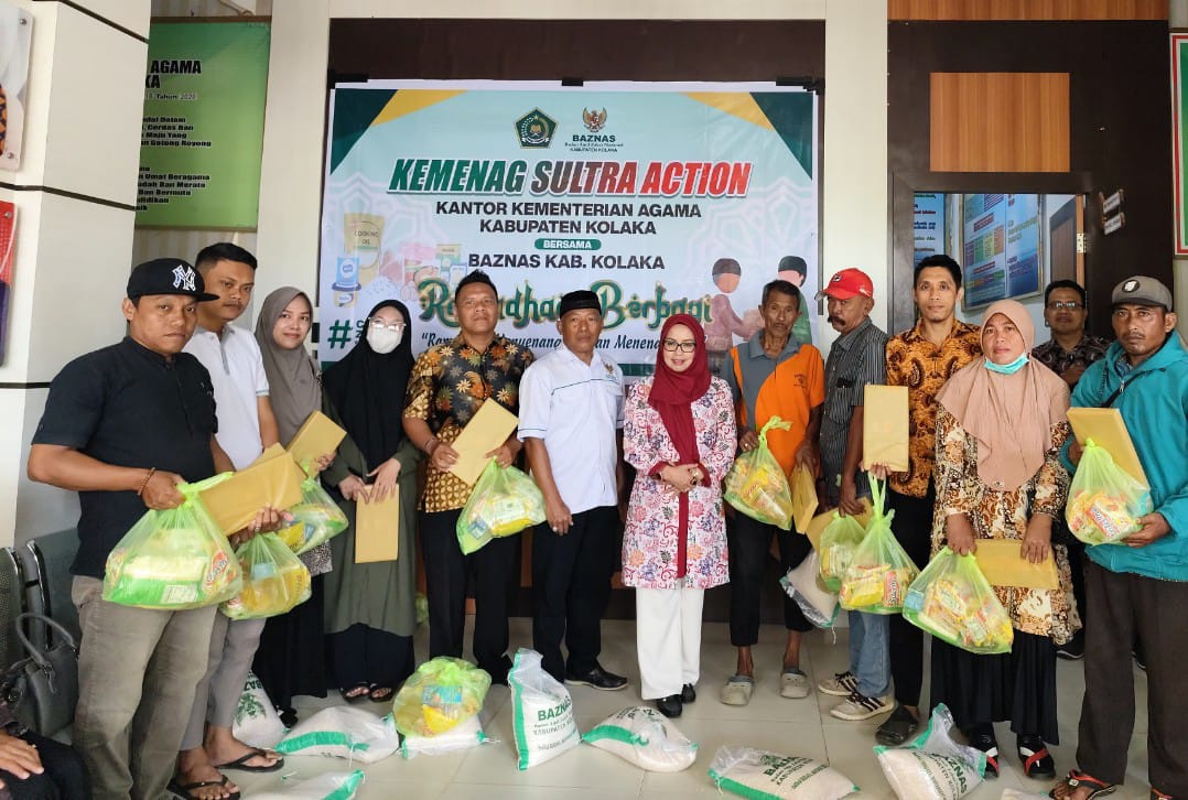 KOLAKA,WN—Giat Badan Amil Zakat Nasional(Baznas) Kabupaten Kolaka Sulawesi Tenggara(Sultra), melakukan kolaborasi dengan Kementrian Agama(Kemenag) Kolaka menggelar kegiatan Sultra action ramadhan berbagi.