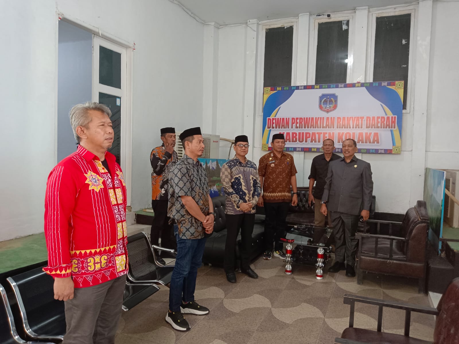 KOLAKA,WN—Saat lagu Indonesia Raya diperdengarkan, begini respek sejumlah pejabat eselon/Kepala Dinas dan anggota dewan saat duduk di ruang lobi kantor DPRD Kolaka sementara berbincang-bincang sebelum mengikuti acara rapat paripurna DPRD Kolaka(14/3/2025).
