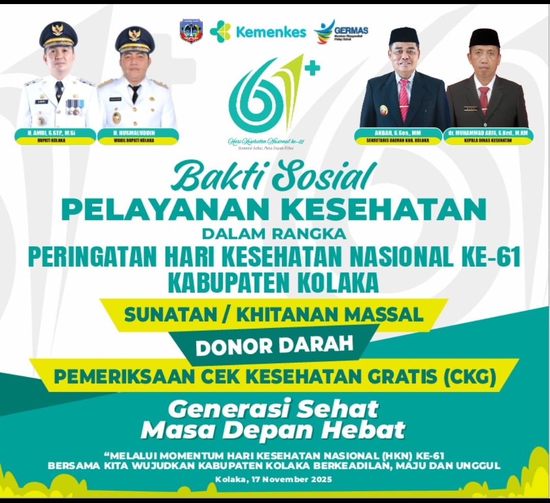 Peringatan HKN ke-61 dengan tema”Generasi Sehat, Masa Depan Hebat”. Dalam kesempatan itu Bupati Amri menegaskan bahwa tema peringatan HKN ini sebagai momentum dan mengandung pesan penting bahwa pembangunan kesehatan adalah fondasi bagi terwujudnya masa depan bangsa yang lebih kuat, produktif, dan berdaya saing.