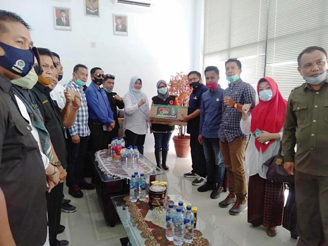 Anggota DPRD Kolaka saat menyerahkan bantuan untuk korban banjir Masamba kepada Bupati Luwu Utara, Ny Indah Putri Indriani