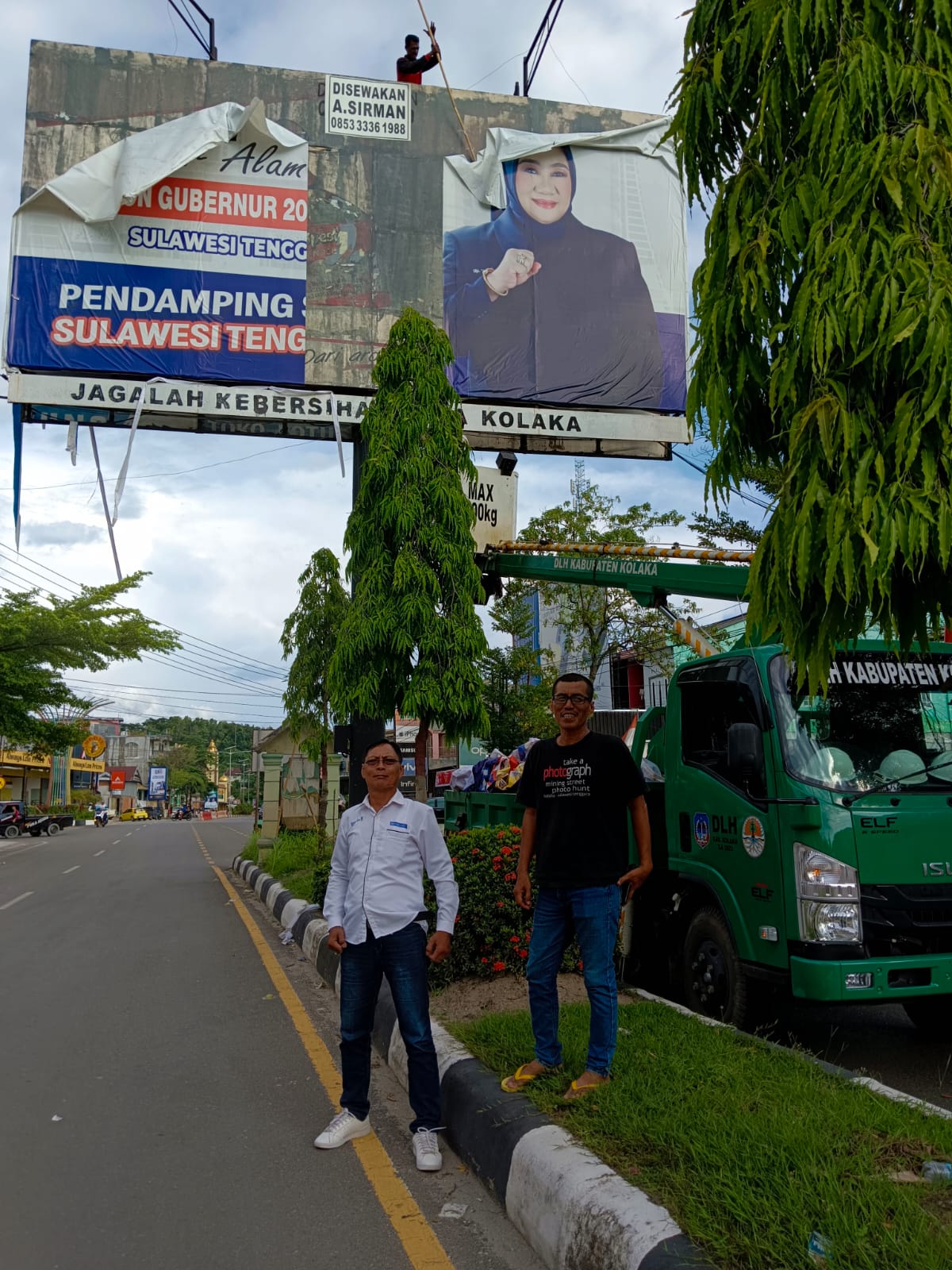 Kolaka,WN-Hari kedua pembersihan alat peraga kampanye pasangan calon Gubernur dan wakil Gubernur serta Bupati dan wakil Bupati Kolaka,pihak KPU menggunakan kendaraan besar jenis “Crane” untuk memudahkan pencopotan baliho yang dipasangan di papan reklame (Bildboard).