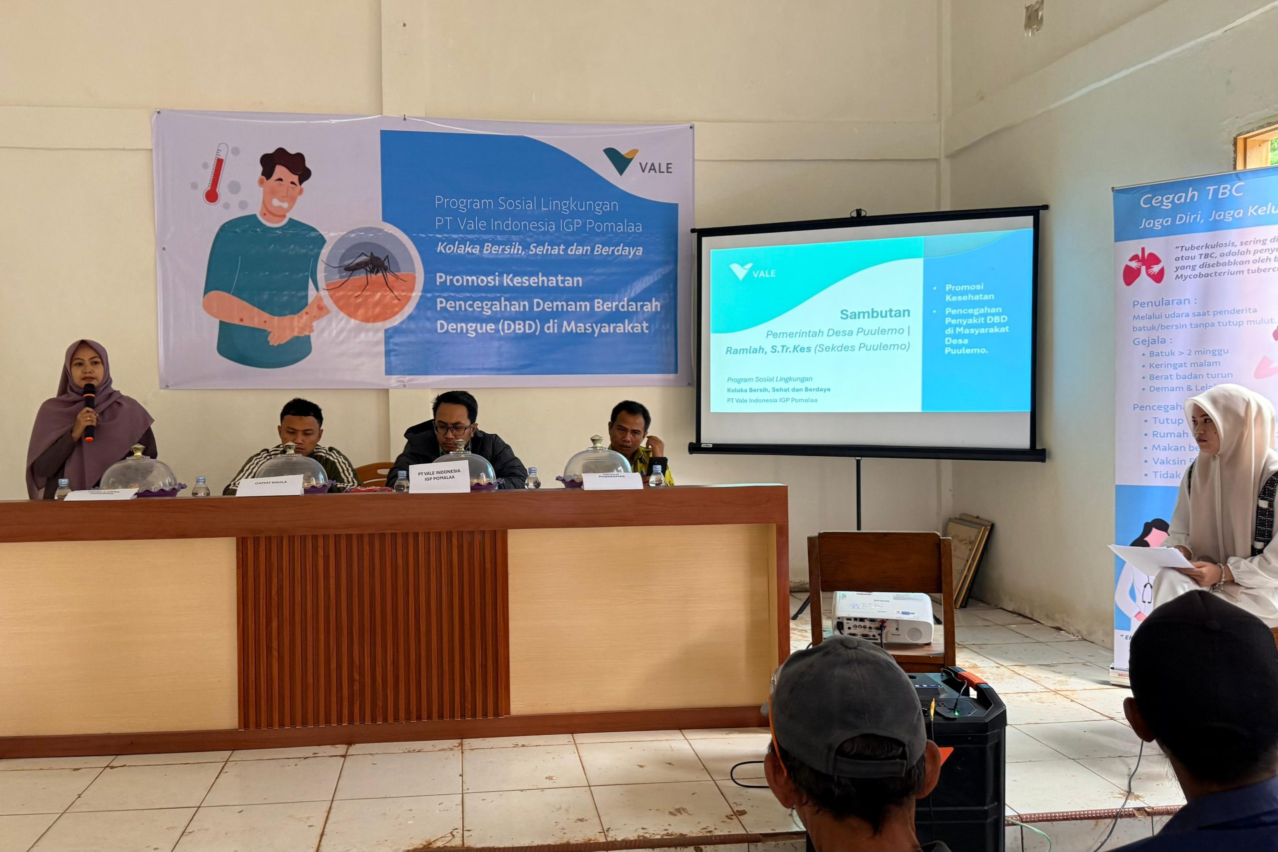 KOLAKA, WN– PT Vale Indonesia Tbk melalui Indonesia Growth Project (IGP) Pomalaa, menggelar Promosi Kesehatan (Prokes) penanggulangan Demam Berdarah Dengue (DBD) dan Tuberkulosis (TBC) pada masyarakat Desa Puulemo, Kecamatan Baula, Kabupaten Kolaka, Sabtu (14/2/2026) di kantor Desa Puulemo.