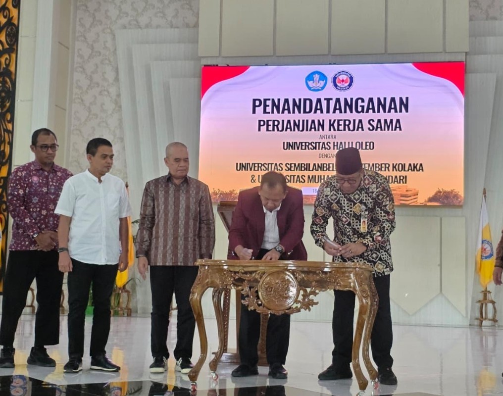Penandatanganan MoU dilakukan oleh Rektor USN Kolaka, Prof. Dr. Nur Ihsan Halil, bersama Pelaksana Tugas (Plt.) Rektor UHO, Dr. Herman, sebagai bentuk komitmen kedua institusi dalam memperkuat kolaborasi strategis di bidang pendidikan tinggi.